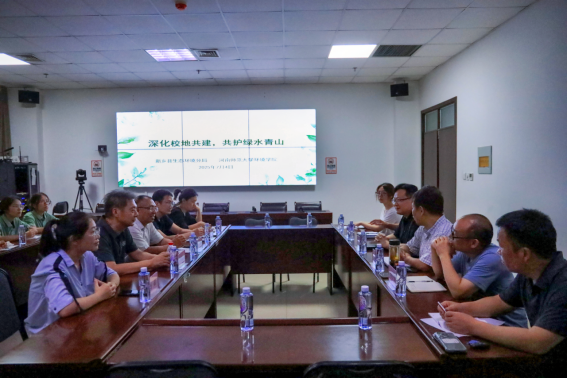 座谈交流中,新乡市生态环境局新乡县分局党组书记、局长梁鑫围绕大气污染防治措施、水污染治理成效等方面详细介绍了新乡县生态环境保护工作的基本情况、面临的挑战以及未来发展规划。副局长武宗升介绍了新乡县环保企业的发展形势,强调了在环境监测、污染防治、环境执法等领域对专业人才的迫切需求。苗山根介绍了学院的历史沿革、专业设置、人才培养以及毕业生情况,并表示希望双方能进一步加强在实习实训、科学研究等领域的深度交流,实现互利共赢。双方围绕实习基地建设、产学研融合等方面进行了热列的讨论,在场学生也就毕业生在行业的工作成长情况以及人才需求等问题进行了有效咨询。
