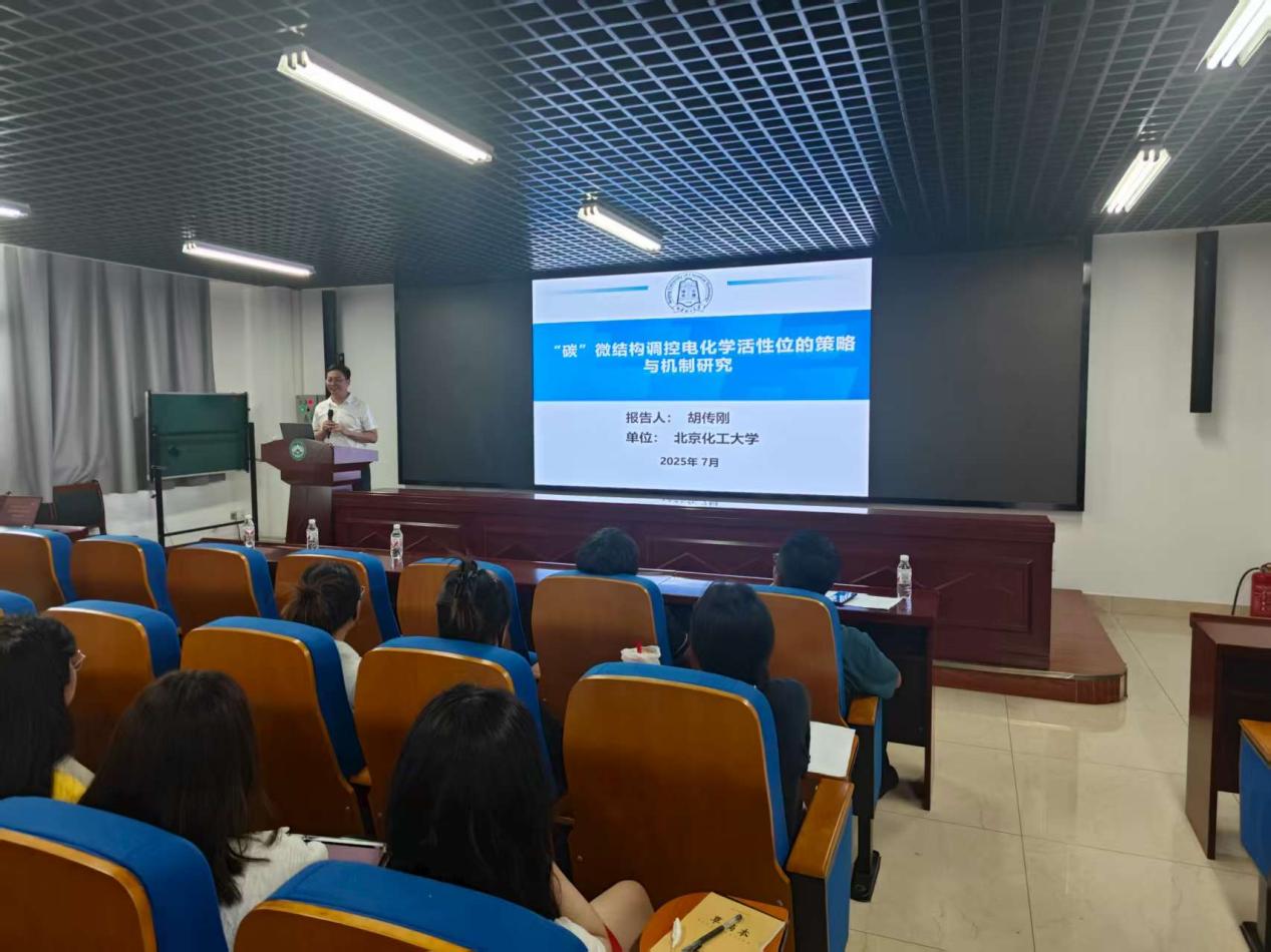 2025年7月2日上午,应环境学院邀请,北京化工大学胡传刚教授于东校区实训楼环境学院1509会议室,为我院师生进行了““碳”微结构调控电化学活性位的策略与机制研究”的精彩学术报告,环境、化学、材料学院相关专业教师、研究生、本科等120余人参加了本次学术交流活动,报告由环境学院曹治国院长主持。