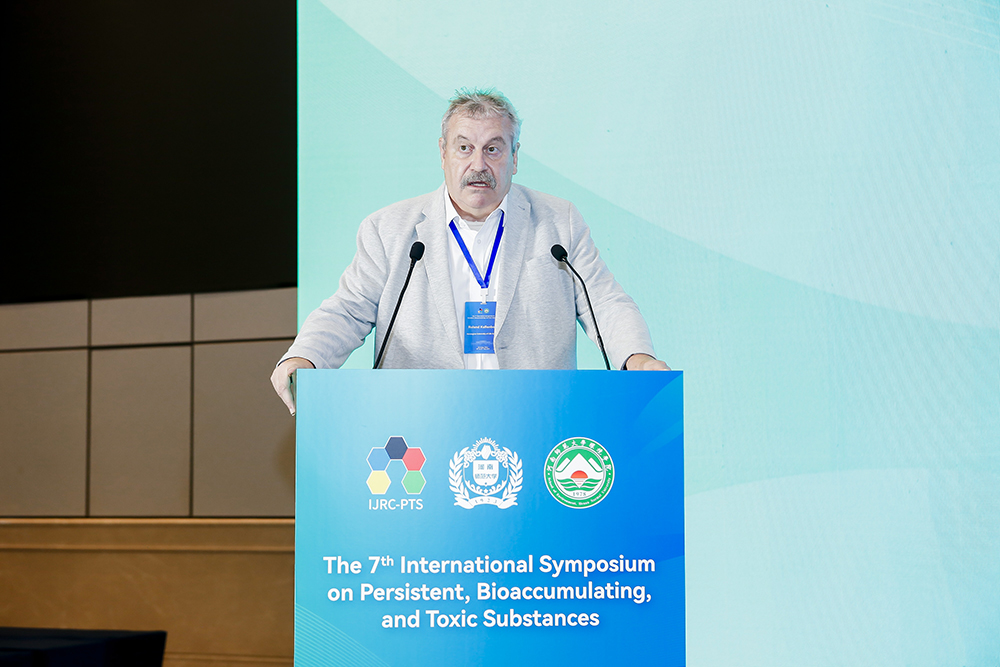 挪威极地科学院院士、挪威生命科学大学教授Roland Kallenborn致祝贺辞,他表示,希望通过本次大会,与会人员可以充分交流有关其研究领域的最新知识,共同探讨环境污染和健康风险管理的前沿问题并提出宝贵的实践经验,不断加强国际合作。