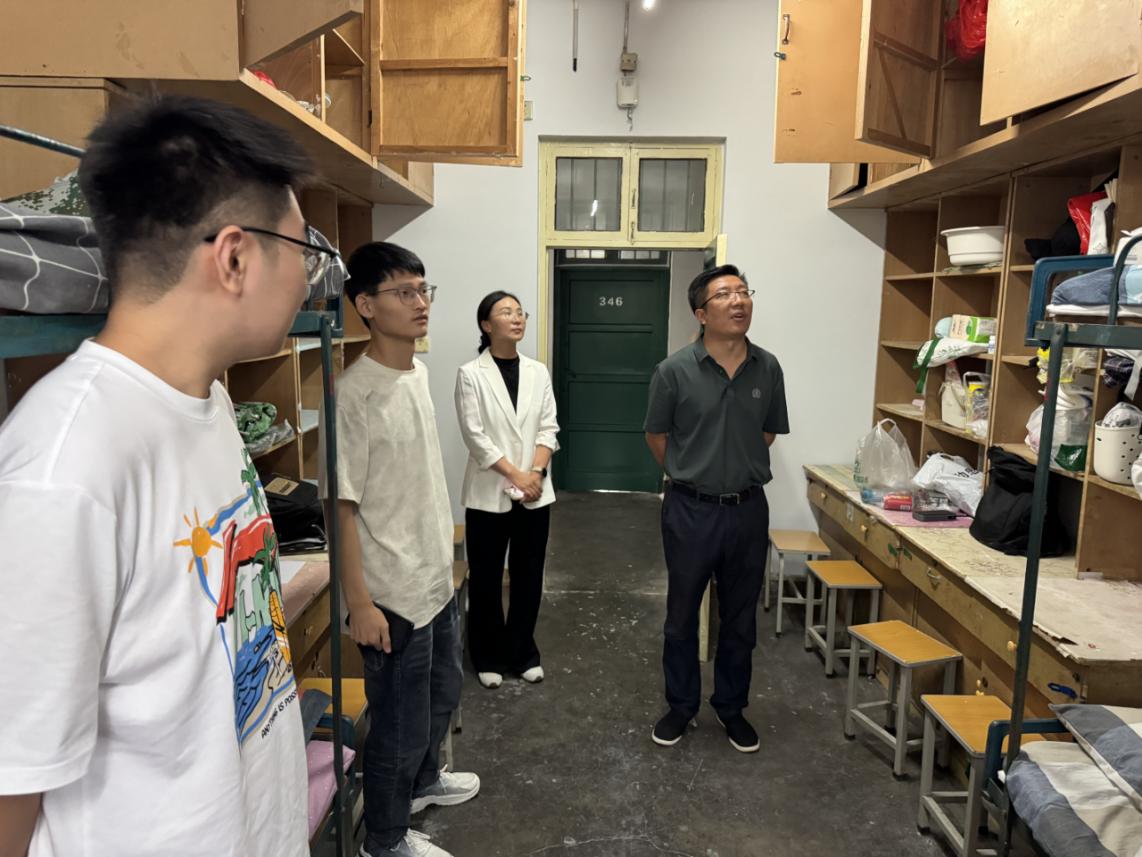 为深入了解2025级新生入学适应情况,帮助新生尽快融入大学生活,9月7日下午,院领导班子成员、专兼职辅导员及新生班主任一行,深入新生宿舍进行走访慰问,解答大家初入校园的各种疑惑和难题,为他们送去学院的温暖问候与深切关怀。