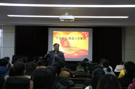 为深入学习贯彻党的十九大精神,引导全体党员强化党员意识、提高党性修养,12月5日下午,环境学院在化学南楼210会议室举行“不忘初心 重温入党誓词”活动。