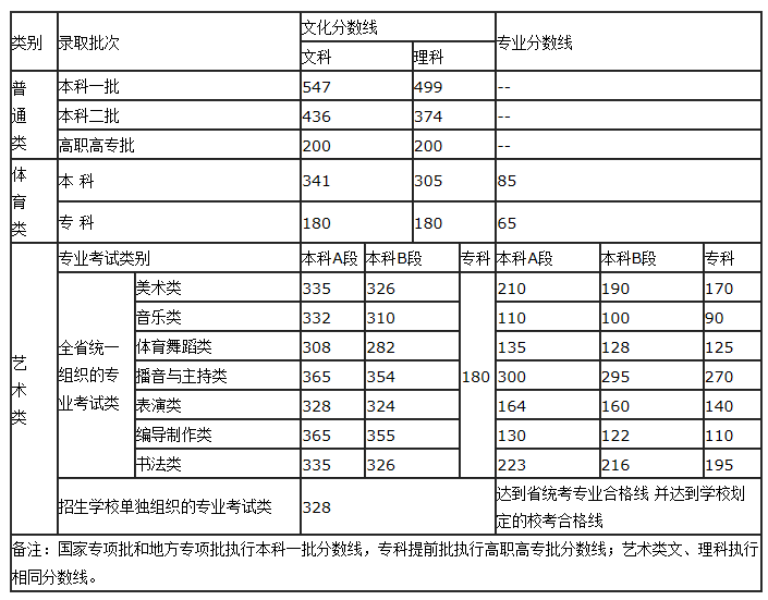三、2018年河南省普通高校专升本招生录取控制分数线