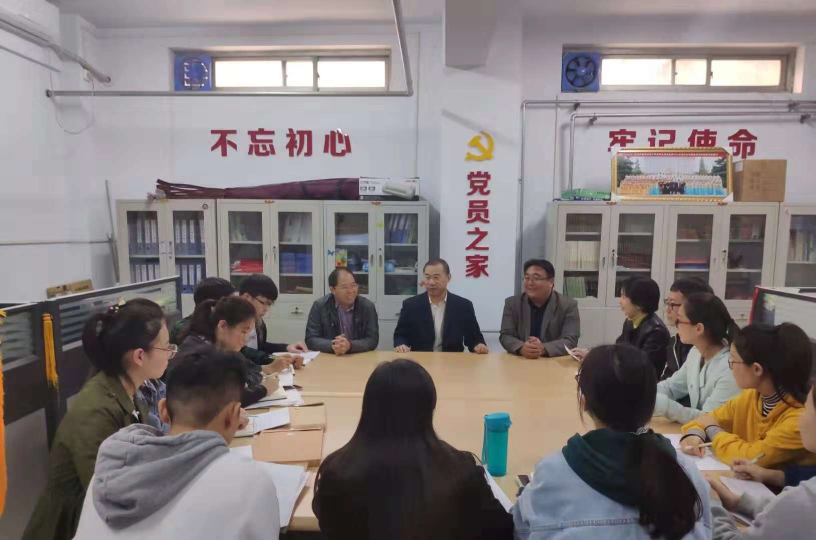 党员大会结束后,赵新生与马新峰、谢友海和2015级党支部全体支委进行座谈,对本次支部党员大会的成功召开给予了充分肯定,并围绕如何做好学生党员发展工作、发挥基层党支部战斗堡垒作用等议题和与会同志进行了深入交流。