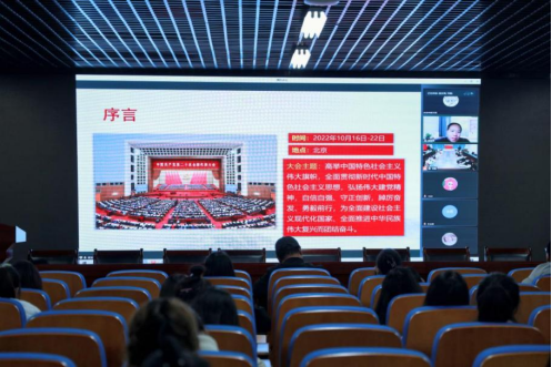 为引导广大学生深刻领会党的二十大报告的精神实质和丰富内涵,11月19日,我院举行学习贯彻党的二十大精神专题辅导报告会,院党委书记谢友海为全体党支部书记、学生党员、入党积极分子作专题辅导。报告会由院党委副书记鲁鹏飞主持。