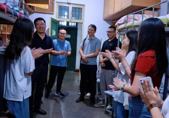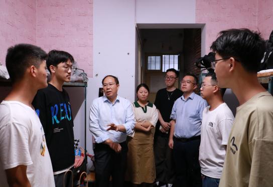为更好地了解2023级新生住宿环境和入学情况,及时了解学生的思想动态、适应状况。9月10日晚,环境学院党委书记谢友海、院长曹治国带领全体领导班子成员、2023级新生班主任及学院全体辅导员老师,一起深入走访新生寝室,传递学校的温暖与关怀。