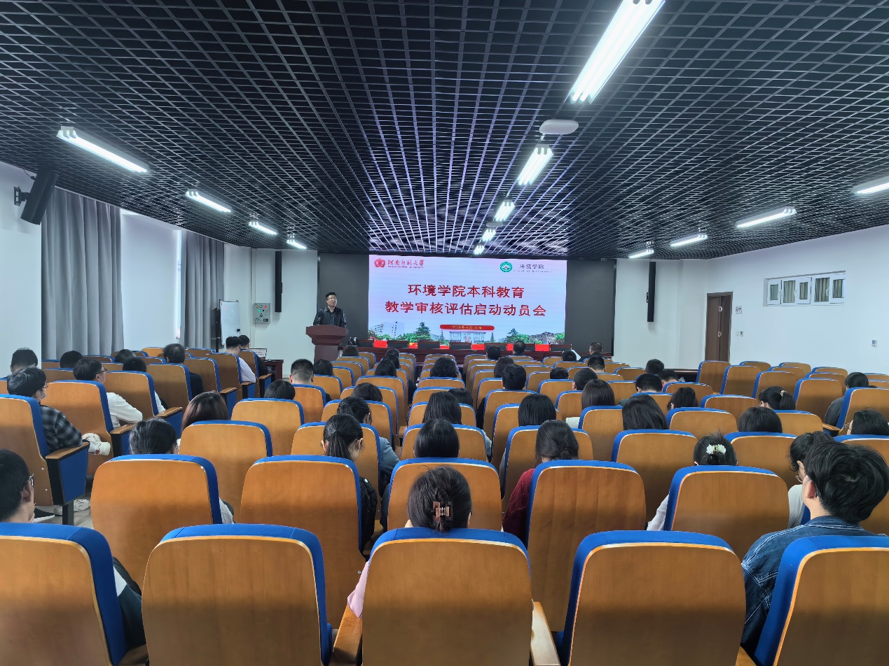为贯彻落实学校本科教育教学审核评估工作相关部署和要求,扎实做好学院审核评估自评自建工作,我院于2024年4月16日在实训楼1509会议室召开本科教育教学审核评估工作启动动员会,学院领导班子及全体教师参会,会议由院党委书记谢友海主持。