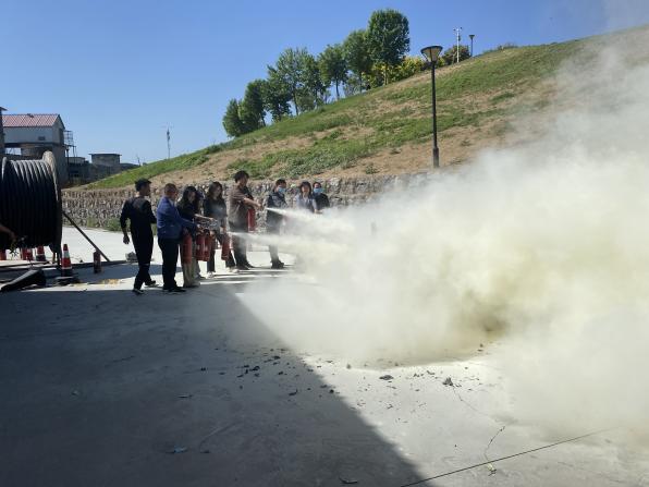 在学校东区后山空地,蔡鹏老师结合实际案例,向同学们详细讲解基本消防安全知识,如火灾的成因、预防措施、扑救方法、逃生技巧等。同时带领同学们进行消防演练实践,训练大家正确使用灭火器等应急设备。学院领导、教师代表也积极参与其中。