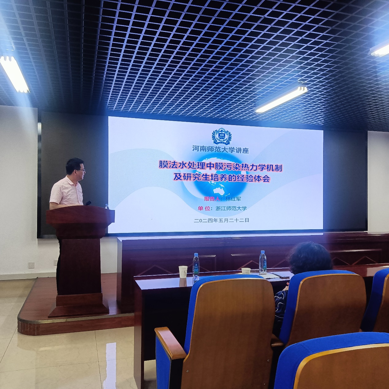 5月22日下午,应环境学院邀请,浙江师范大学地理与环境科学学院林红军教授于东校区实训楼1509会议室,为我院师生带来题为“膜法水处理中膜污染热力学机制及研究生培养的经验体会”的精彩学术报告。环境学院相关学科学术带头人、青年骨干教师、研究生等100余人参加了本次学术交流活动,报告由院长曹治国教授主持。