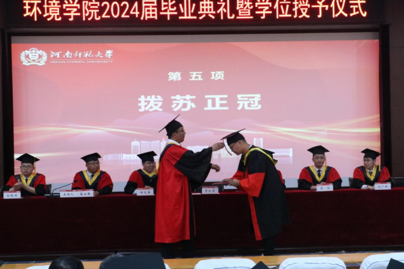 典礼仪式在雄壮的国歌声中拉开帷幕。典礼仪式上,副院长朱桂芬宣读了优秀毕业生表彰决定和优秀毕业论文表彰决定,副院长武大鹏宣读了研究生学位授予决定,副院长闫旭宣读了本科生学位授予决定。院党委书记谢友海、院长曹治国分别为优秀毕业生代表、优秀学位论文获得者颁发证书。曹治国为博士毕业生拨苏正冠、颁授学位证书,与会全体院领导、系主任共同为硕士毕业生和本科毕业生拨苏正冠、颁授学位证书。