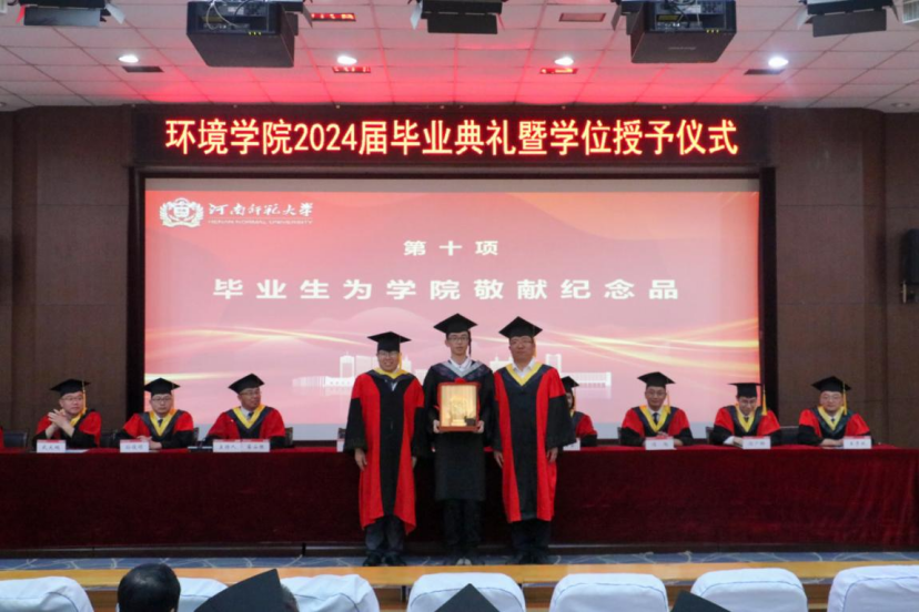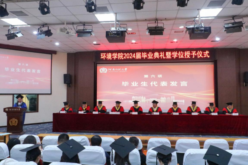 本科毕业生代表黄珂欣、硕士毕业生代表张亚彩、博士毕业生代表卫涛依次发言,他们回忆了在环境学院求学期间的点点滴滴,表达了对学院和老师们的诚挚感谢和美好祝福。在校生代表、院学生会主席樊一萌发言,她回忆了与学姐学长朝夕相处的美好时光,对学姐学长地关照和帮助表示衷心的感谢,并送上了真挚的祝福。教师代表李云蓓为毕业生们送上祝福,她鼓励同学们发扬环境人开拓进取的精神,将小我融入大我,为新时代生态文明建设、美丽中国建设、乡村振兴事业贡献力量。
