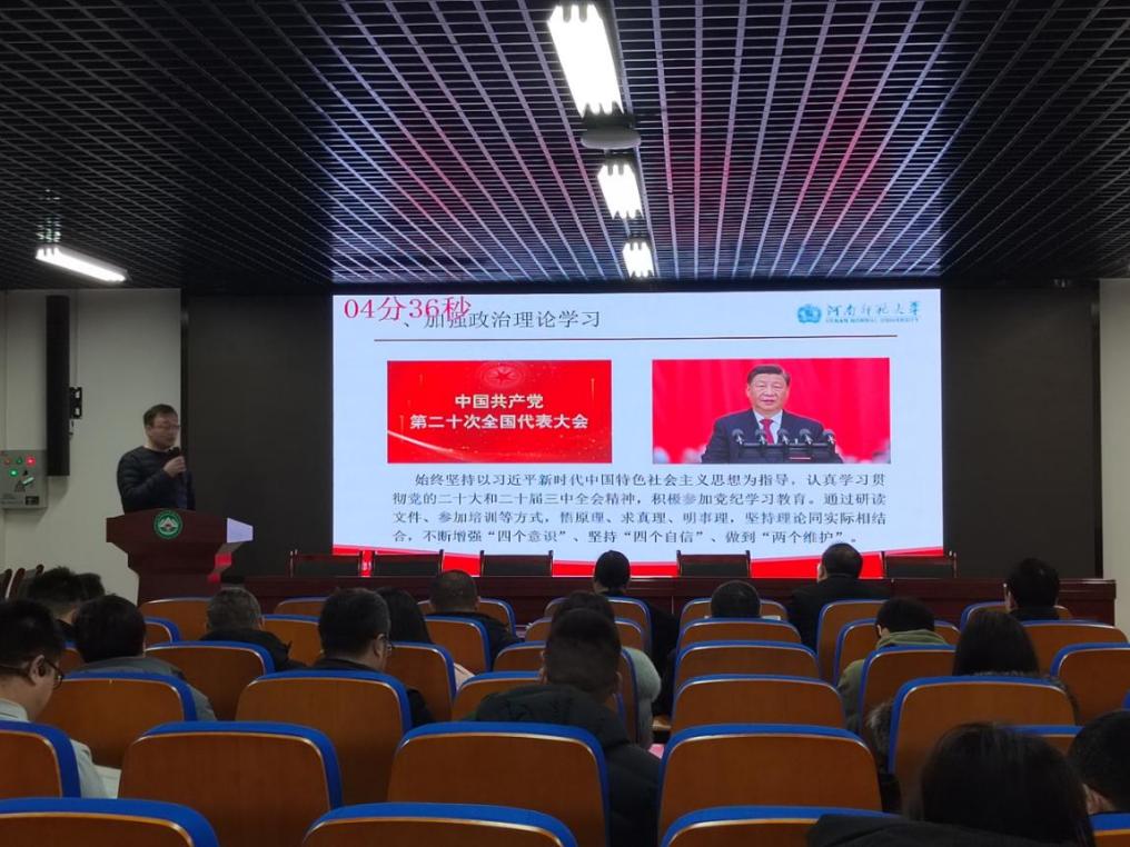谢友海作总结发言,他指出,环境学院2024年度各项工作取得了优异的成绩,是学院党政班子履职尽责、开拓创新的结果,是党支部战斗堡垒作用和党员先锋模范作用充分发挥的结果,是全体师生团结奋斗、积极进取的结果,在新的一年里,院党委将坚持“把基层党组织建设成为有效实现党的领导的坚强战斗堡垒”要求,一是强化政治引领,坚持和加强党的全面领导。认真落实学校党委工作部署,善于统一思想、凝聚人心、增进共识,将党的建设有机融入学习科研和生活中,组织引领党员群众听党话、跟党走;二是强化纪律建设,坚定不移推进全面从严治党。建立党纪学习教育长效机制,在学纪、知纪、明纪、守纪方面出实招、务实功、求实效,从严从实抓好党的纪律建设;三是强化规范建设,以高质量党建推动高质量发展。要加强支部党员队伍建设和日常党员监督管理,确保党员教育管理的规范化,坚持把党的建设与事业发展深度融合,推动党建工作质量全面提升,为学院事业高质量发展提供坚强组织保证。