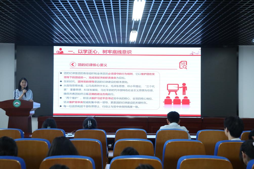 为进一步加强团学骨干的廉洁自律意识,5月18日下午,我院在实训楼1509报告厅开展“纪法与青春同行”专题辅导。环境学院团委书记刘敏作题为“知纪明法守底线,青春力行勇担当”的专题报告。学院第十三届团委学生会全体成员参加报告。