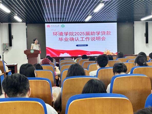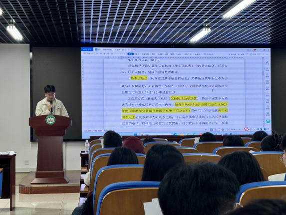 为帮助贷款毕业生明晰2025年还款政策,顺利完成毕业确认手续,强化助学贷款学生诚信意识和社会责任感。5月15日,我院在实训楼1509报告厅召开2025届助学贷款毕业确认工作会暨诚信教育活动。会议由资助专员任洁主持,环境学院2025届生源地及校园地助学贷款毕业生参与。