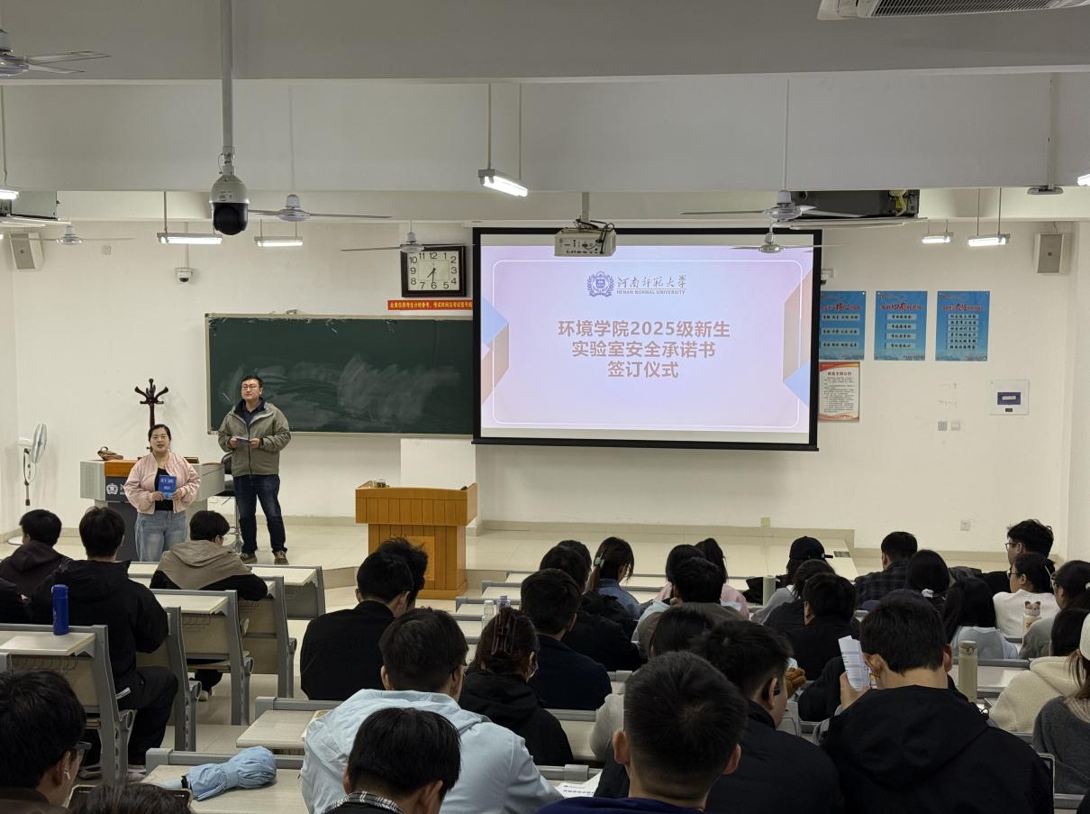 为深入贯彻落实学校安全教育月工作要求,强化研究生实验室安全意识,推动实验室安全文化从“要我安全”向“我要安全”转变,10月17日晚,我院在文昌楼428举行2025级研究生实验室安全承诺书签约仪式。仪式由研究生辅导员马欢欢主持,学院100余名研究生新生全员参与。
