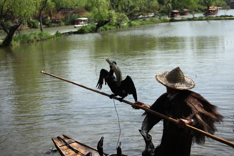 利用动物捕鱼堪称特殊的渔法,它是经过对动物食物链长期观察与实践而形成的新型渔业活动。同人类驯化野牛进行大田耕作一样,它在一定程度上表现了人类对自然物的认知与驱使,由于自然物种被附加了工具的性质,人类的智力活动在渔事中已构成了生产力的因素。我国利用动物捕鱼已有千年以上的历史,其渔法主要是驯化鸬鹚和水獭以捕鱼,因它们“取鱼胜于网罟”,故至今犹有所见。