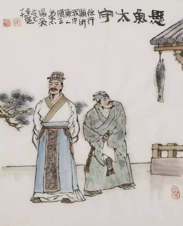 东汉南阳太守羊续悬鱼的故事流传千古。在羊续任职期间,有“府丞焦俭以三月望饷鲤鱼一尾”,但羊续不愿接受,又不想拂了对方的颜面,就将这一尾鲤鱼悬挂在房檐上,以此教育送礼之人,拒绝贿赂(李昉《太平御览》)。又为鲤文化赋予了为人正直、为官清廉之意。