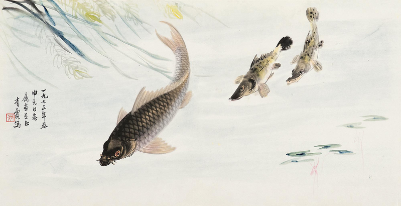 鱼不同于其他生物的特征就是能够借水体快速游动,从而呈现出一种无拘无束的快乐姿态。它能够拥有自由、亲近自然,呈现一种最自然、原始的面貌,这正是文人所追求的理想境界。在感受鱼的瞬间,庄子的“自我”与天地万物间的界限便消失了,对鱼的主观感受达到了“鱼与人”“物与己”“天与人”合一的状态,进入忘我的自由境界,认为这就是天地间最高的快乐和自由。