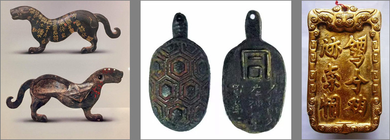 符牌在古代是调动军队或发布命令的信物。在我国历史上使用过的符牌多种多样,它们包括不同的材质、形状和用途。例如,先秦-魏晋乃至唐初都在使用的铜制虎符,就是虎形的符牌;武周时期的龟符,辽契丹兽头花纹的符牌,一般做调兵使用。另有象征官员身份的腰牌,明代通行的象牙制成的牙牌,还有文人喜欢佩戴的,寓意美好的玉牌。鱼符则是鱼形的符牌。