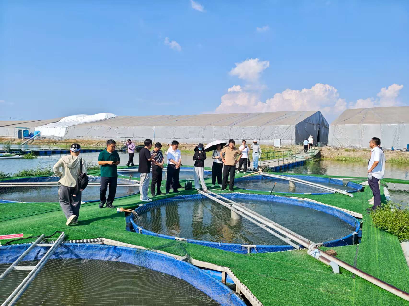 参观通威漂浮式圆形池养殖系统