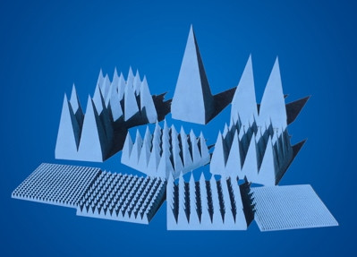 SA-100型吸波材料:呈四面体角锥形,外形整齐,美观洁净,柔韧可弯曲,物理性能良好;高质量聚氨酯泡沫主体,吸波成分为炭黑。能满足0.5GHz-40GHz的吸波需求。矢量网络分析仪、标准增益喇叭天线和吸波材料相结合可以满足工作站科研所需的天线性能测试、超材料透射反射性能测试及介质吸波性能测试的需求。