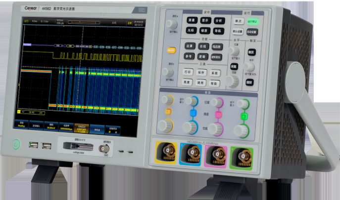数字荧光示波器:集数字示波器、逻辑分析仪、函数发生器、总线分析仪、数字电压表于一体,带宽350MHz-1GHz,采样率5GSa/s,存储深度500Mpts/CH,波形捕获率100万个波形/秒,具有波形自动设置、波形参数自动测量与统计、光标测量、直方图测量、数学运算、FFT分析、串行总线触发与分析、极限与模板测试、功率测量与分析、波形录制与回放、模数混合信号分析、任意函数发生等功能。