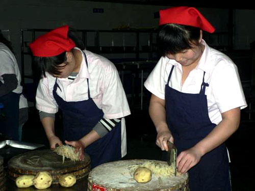 本次比赛分为切土豆丝和包提花包两项比赛。比赛开始前,每位参赛职工摩拳擦掌、跃跃欲试;在紧张激烈的比赛中,参赛职工你争我夺、不甘落后。现场加油声此起彼伏,气氛热烈。经过紧张的角逐,面案参赛职工高军燕在规定时间内包出12个大小均匀、皮薄馅多的提花包获得面案提花包比赛第一名;菜案参赛职工余文莉在规定时间内切出2.6斤长短一致,粗细均匀的土豆丝获得了菜案切土豆丝比赛第一名;孙文芳、郭瑞芳等7名职工分别获得第二名、第三名。