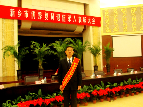 11月17日,在新乡市政府办公大楼召开的全市优秀复员退伍军人表彰大会上,水电中心副经理任国华同志榜上有名,被新乡市民政局、中共新乡市委宣传部、新乡军分区政治部、新乡市人力资源和社会保障局授于“新乡市优秀复员退伍军人”荣誉称号。