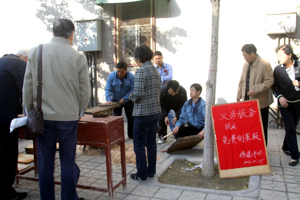 本次义务服务活动由中心支部书记韩百召同志亲自带队。整个上午共刨菜墩、菜板三十多个,服务工作持续近十二点才结束。
