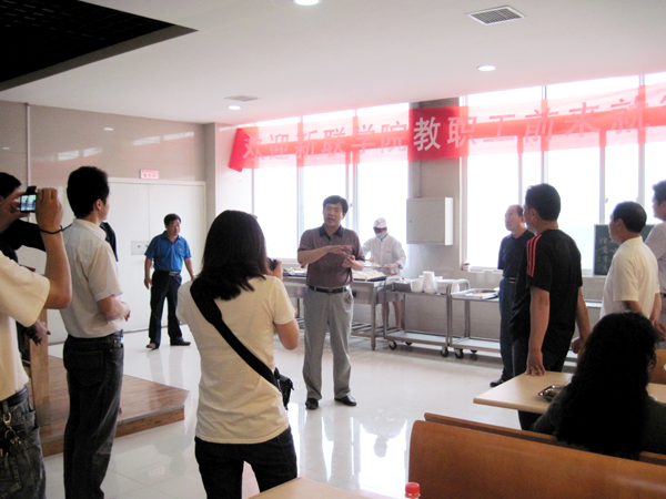 5月29日,后勤服务集团总经理张进江一行冒雨来到新联学院小店校区,慰问奋战在一线的后勤职工,验收校区后勤各项工作的交接。