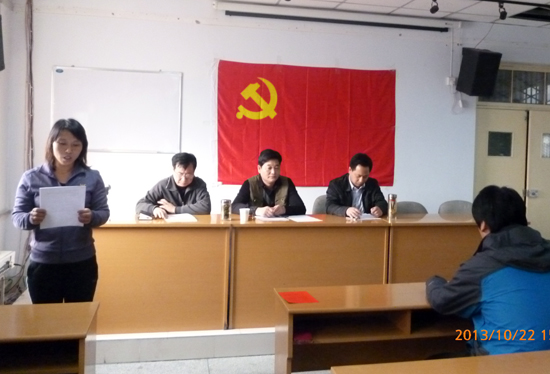 10月23日下午3:00,后勤党委新党员宣誓大会在文渊楼5楼会议室举行。出席此次大会的有后勤党委委员、后勤管理处副处长、后勤服务集团副总经理陈军涛、金峰,新发展的党员程震、刘海波、刘营花以及三个单位的全体党员。本次大会由后勤机关党支部书记韩君录主持。