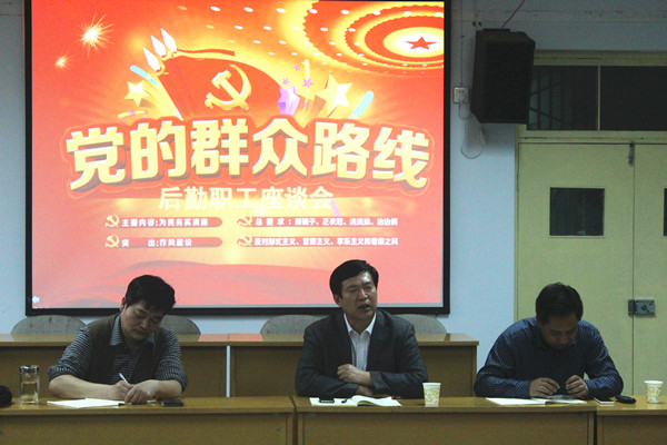 根据后勤党委制定的党的群众路线教育实践活动实施方案,3月28日下午,后勤党委在五楼会议室召开了党的群众路线教育实践活动后勤职工座谈会。后勤管理处、后勤服务集团领导班子出席会议,来自后勤各职能部门和实体中心的26名职工代表参与了本次座谈。