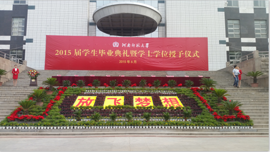 6月10日早晨7:30分,我校2015届毕业生毕业典礼如期举行,为保证本次活动的正常举行,校园中心精心布置了以“放飞梦想”为主题的鲜花置景方案,并认真组织实施,落实方案。