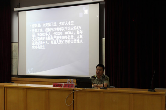 为全面落实2015年后勤安全工作目标责任书,切实提高后勤管理水平和职工安全意识,认真配合学校开展安全大生产活动,6月11日,由教学办公楼服务中心承办的后勤安全消防知识讲座在新阶梯楼党校教室举行,后勤职工及物业、学生代表300余人参加了培训。本次讲座邀请了新乡市消防支队法治宣传科科长赵金海主讲,后勤管理处副处长张海涛主持。