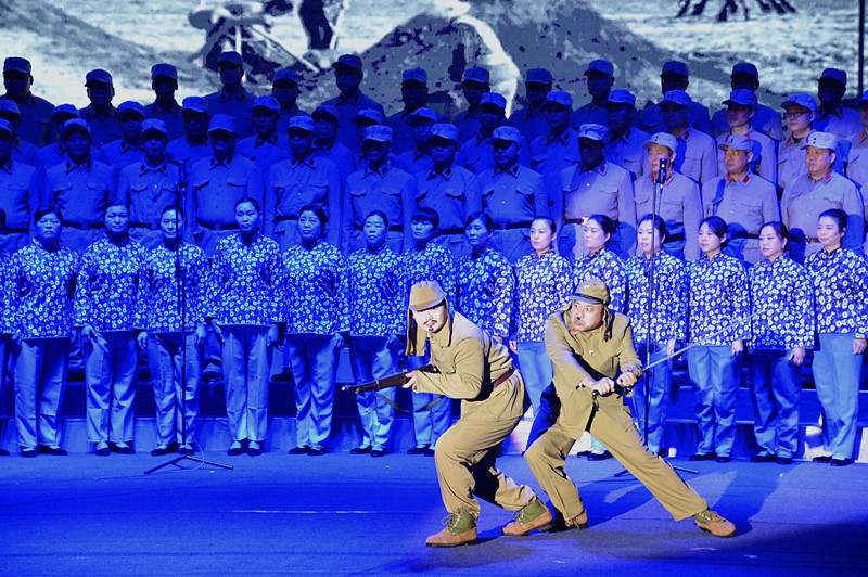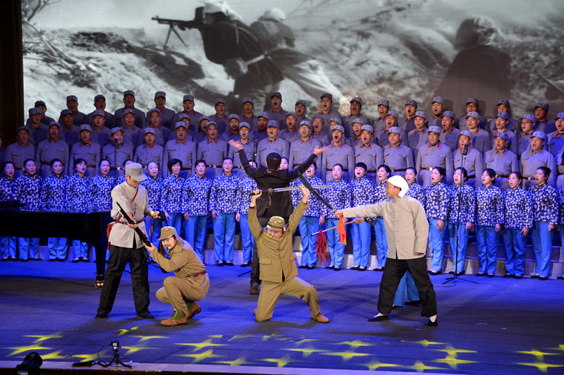 在比赛中,后勤合唱队男职工身穿八路军军装,显示神圣威武;女职工身着蓝底白花便装,更是铿锵玫瑰。他们以豪情满怀、整齐嘹亮的歌声为观众带来了一场视觉和听觉的盛宴,倾情演绎着一首耳熟能详、催人奋进的抗战经典歌曲,表达了中国人民英勇顽强、神出鬼没、机智勇敢打击日寇侵略者的豪迈气概,表达了中国人民为保卫祖国战斗的壮丽场景,表达着对无数抗战英雄的崇高敬意。全体职工倾情投入,时而轻,时而重,时而缓,时而急,动情的歌声仿佛将全场的人带到了炮火纷飞的年代。雄壮的歌声、激昂的热情、磅礴的气势。当“鬼子”胆战心惊出现时,一声震耳欲聋的喊“杀”,回荡在音乐大厅,之后,一声“消灭完”,震撼云霄,全场报以热烈的掌声,经久不息……