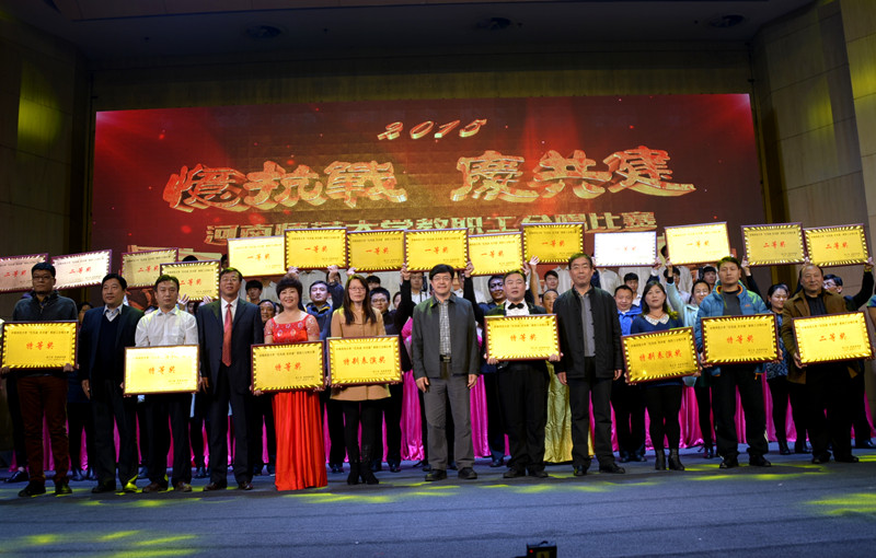 “地道战,嘿!地道战,埋伏下神兵千百万……”一曲雄壮豪迈、铿锵有力的歌声回荡在师大音乐厅。歌声落下,爆发出雷鸣般的掌声。这就是后勤职工代表队于11月17日在师大“忆抗战 庆共建”全校教职工合唱比赛中演唱的电影《地道战》主题歌。职工们用真挚的感情和刚健的歌声赢得了评委和全场师生,勇夺最高等级奖项——特等奖。
