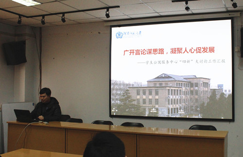 12月22日下午,后勤党委在文科楼会议室召开“新使命、新标准、新境界、新贡献”大讨论中心经理研讨会。后勤领导班子成员、后勤各中心、各科室负责人参加了研讨会。