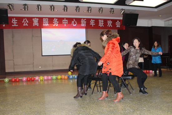 1月19日下午,在后勤管理处、后勤服务集团工会大力支持下,由学生公寓服务中心主办的2016年迎新年主题联谊会“和谐共谋稳前进,携手再创新篇章”在文轩阁三楼活动中心举行。后勤管理处工会主席、后勤管理处副处长张海涛、后勤管理处副处长金峰、教学办公楼服务中心副经理,后勤分工会宣传委员赵波、学生公寓服务中心3家外包公司应邀参加此次联欢会。