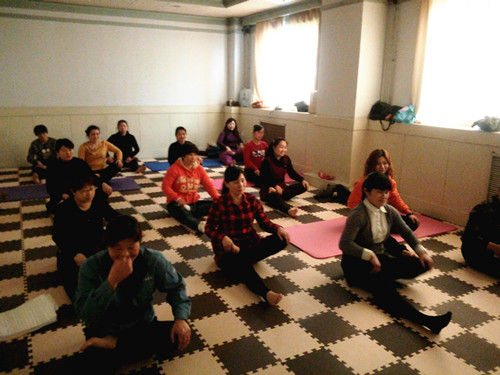 继“关爱女工健康,提升服务质量之三八身体健康讲座”活动之后,后勤女工于2016年3月22日下午四点在后勤工会活动室学习瑜珈,进行身体锻炼。