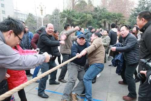 12月29日下午,我校2016年教职工迎新年拔河比赛在西校区图书馆前广场举行。校长常俊标、副校长孙先科、校工会主席岳杰勇到比赛现场观看了比赛,并为各参赛队鼓劲加油。