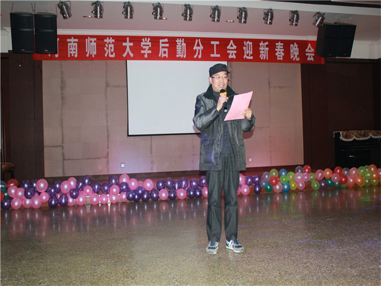 李庆广代表后勤领导班子致辞,向全体后勤同仁致以诚挚的敬意。他在讲话中指出,在刚刚过去的2016年,后勤全体员工在各自的岗位上兢兢业业、顽强拼搏,为后勤事业的发展付出了辛勤的汗水。新的一年开启新的希望,新的历程承载新的梦想。当前,我校面临全面深化综合改革、国家“双一流”建设、省部共建的大好机遇,后勤要为学校的发展提供坚强保障。2017年,正是我们干事创业、扬帆起航的新一年,希望后勤全体职工以提高服务质量为目标,锐意进取、团结协作、大胆创新,为共创我们辉煌的事业而共同努力。