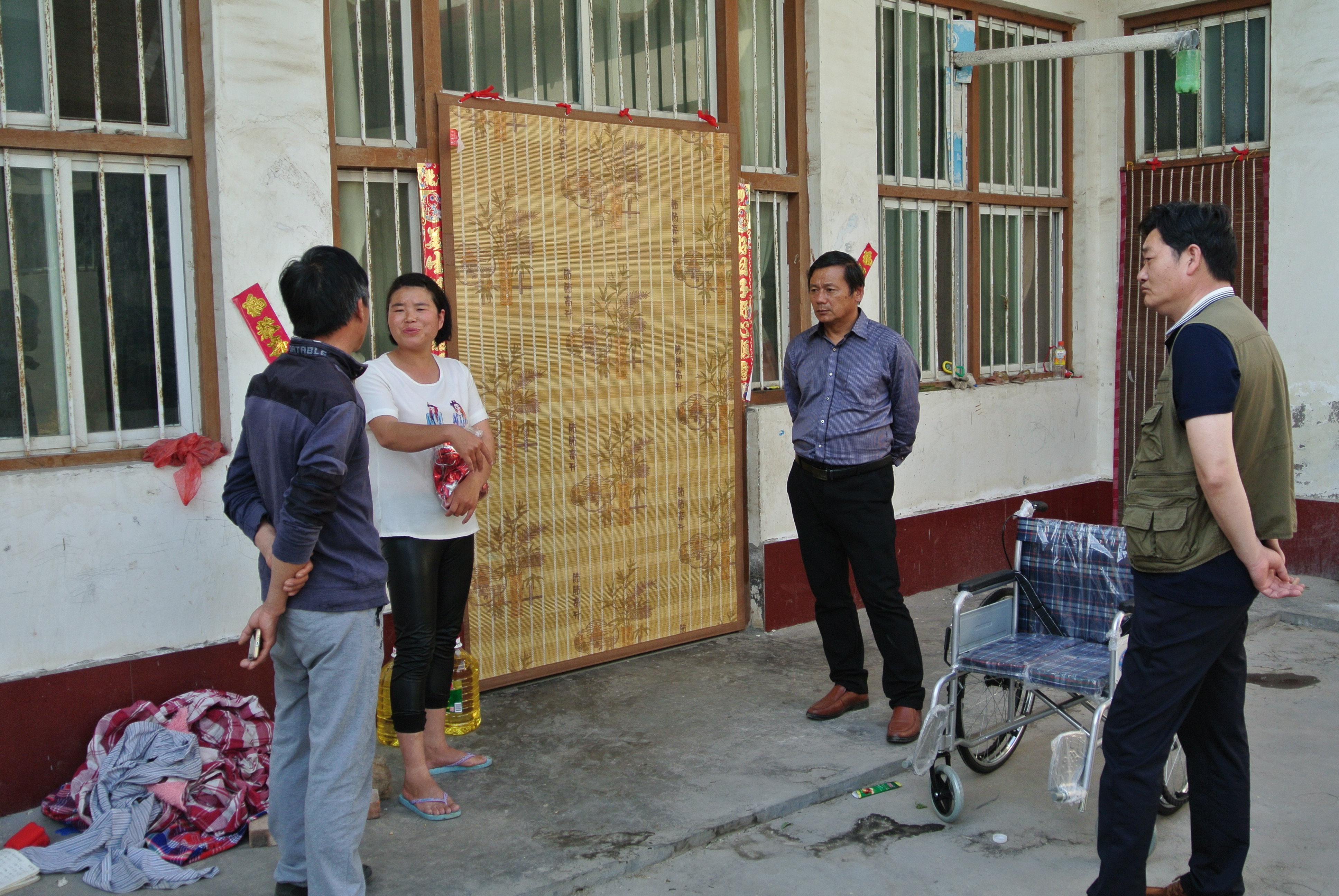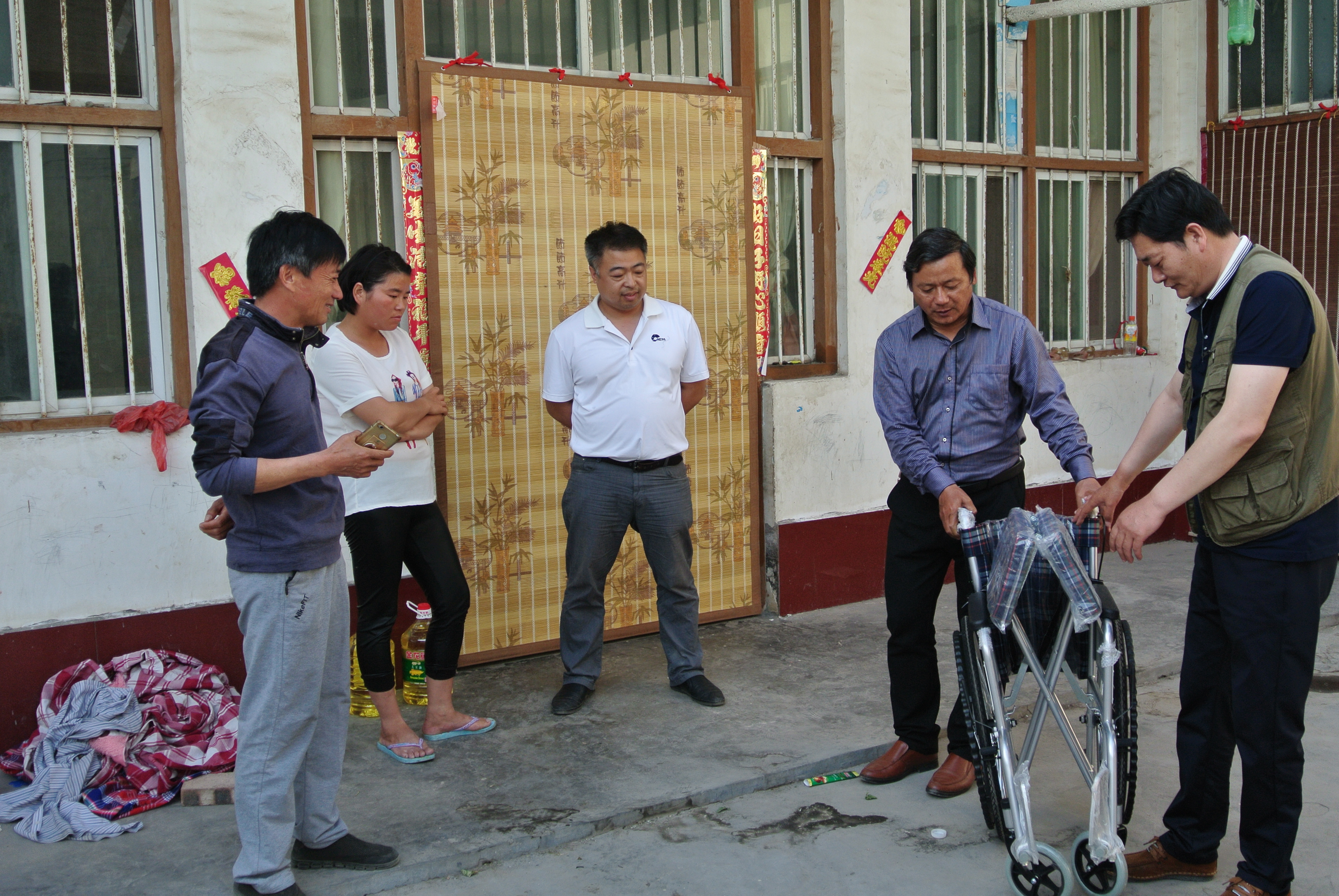5月2日下午,辉县市吴村镇柳湾村谢八祥一家收到了一份特殊礼物,后勤党委书记陈俊杰、副处长金峰代表我处为半身不遂的谢八祥老人送来了一部轮椅,解决了其行动不便的困难。