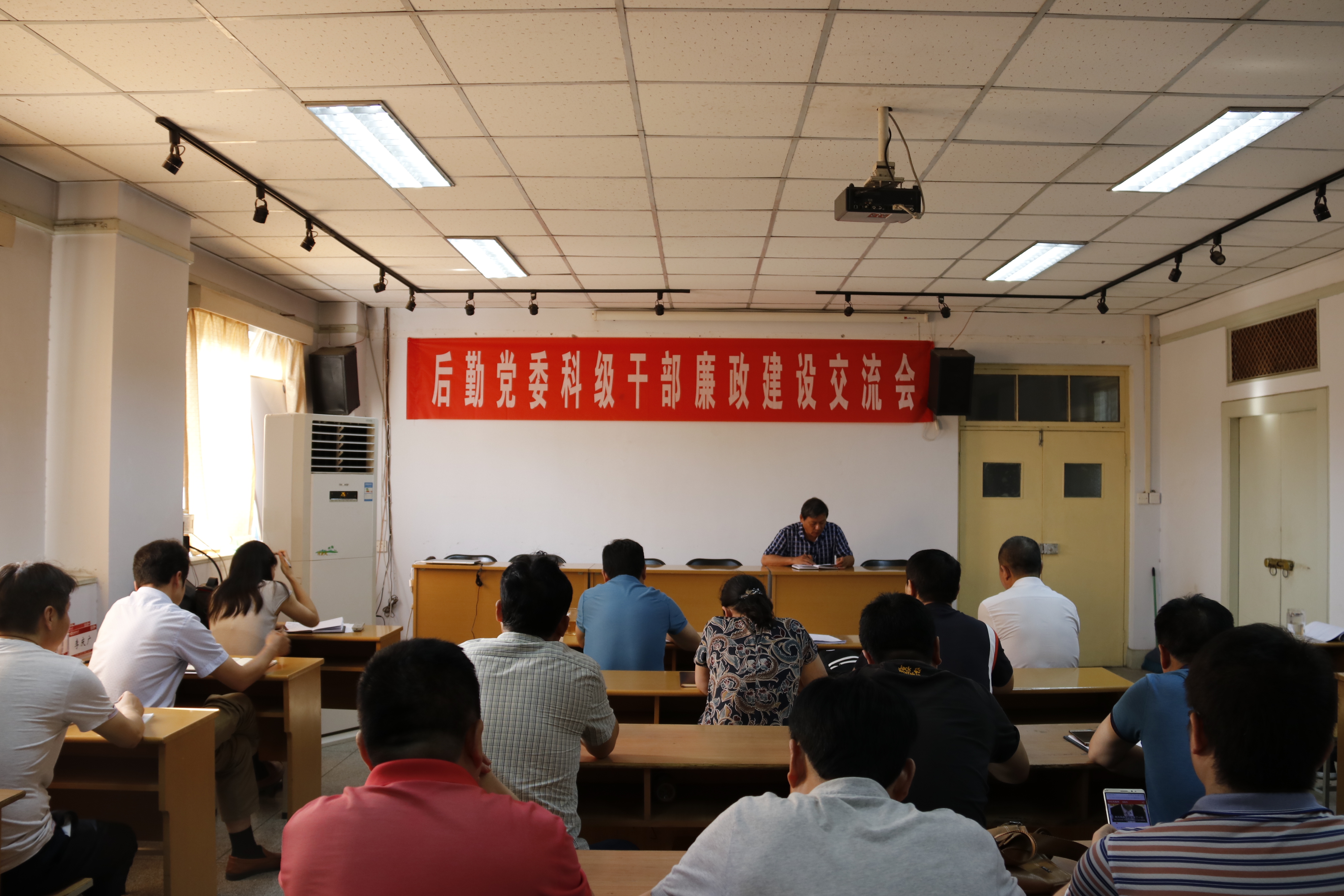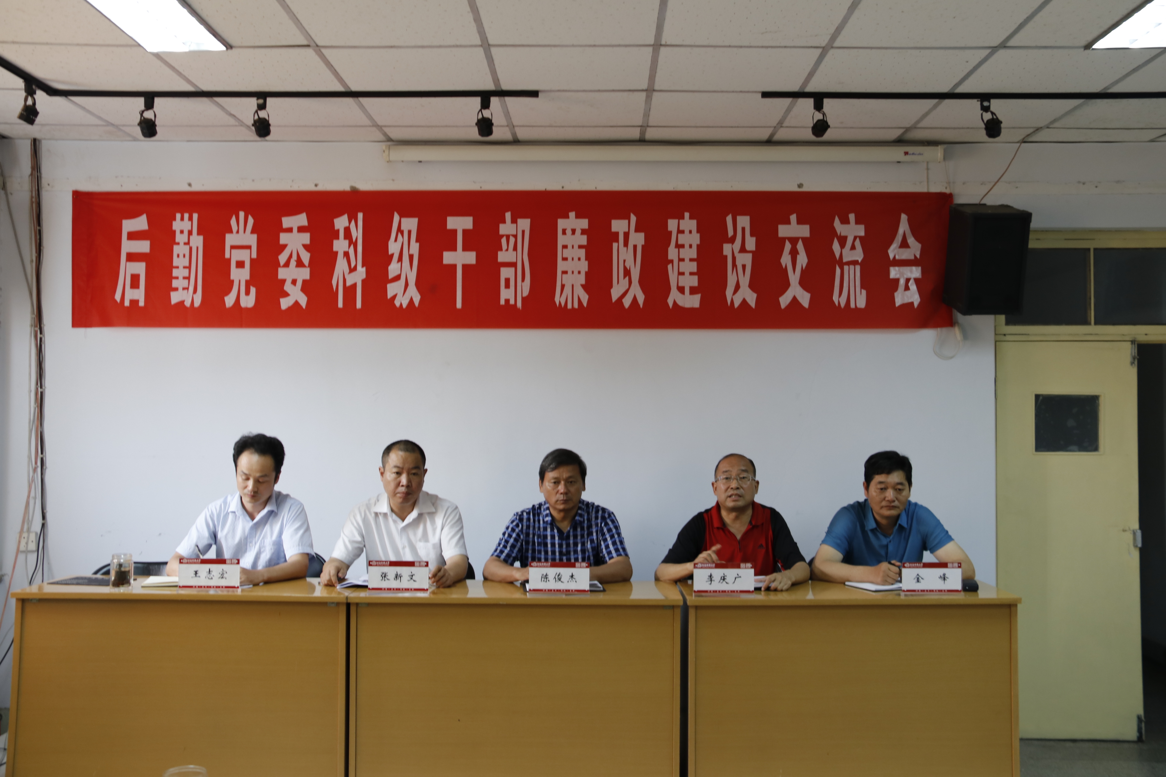 6月29日下午,后勤党委在文渊楼五楼会议室召开科级干部廉政建设交流会。后勤党委书记陈俊杰、处长李庆广、副处长张新文、金峰、王志宏出席。后勤管理处、后勤服务集团各科室、各中心的科级干部20余人参加了会议。交流会由李庆广处长主持。