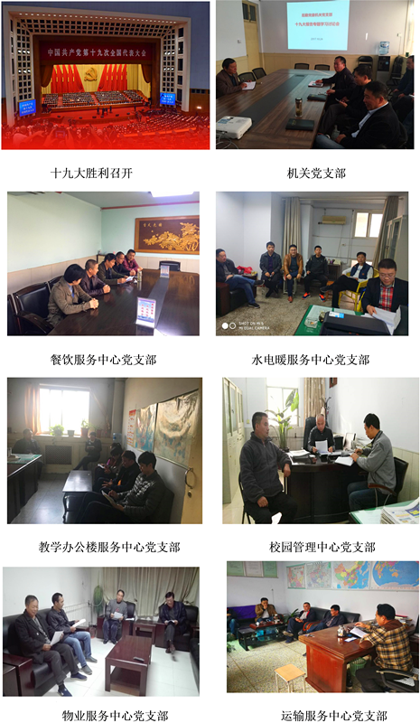 10月24日下午,按照校党委宣传部要求,后勤党委组织各党支部开展学习活动,认真学习习近平总书记在中国共产党第十九次全国代表大会上所做的报告。在认真学习基础上,各支部结合本部门实际情况展开讨论,探讨如何立足本职岗位,更好地为决胜全面建成小康社会、夺取新时代中国特色社会主义伟大胜利,实现中华民族伟大复兴的中国梦贡献力量。
