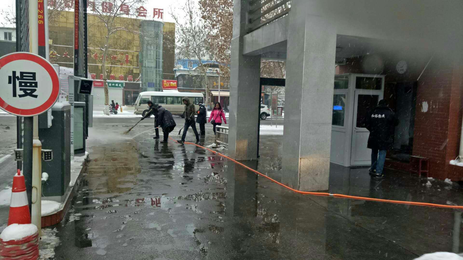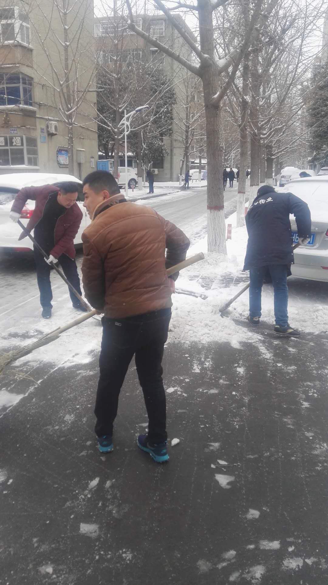 1月4日,迎来了2018年的第一场大雪,为了保证第一家属区广大业主出行安全,物业服务中心组织和裕物业公司全体员工分别对小区大门口、主干道、便道的积雪进行铲除。本次清雪铲冰活动不仅为小区业主提供方便、安全、洁净、和谐的小区环境,也使物业公司全体员工增强服务意识,按照主动、热情、周到、便捷的服务理念服务于小区业主。