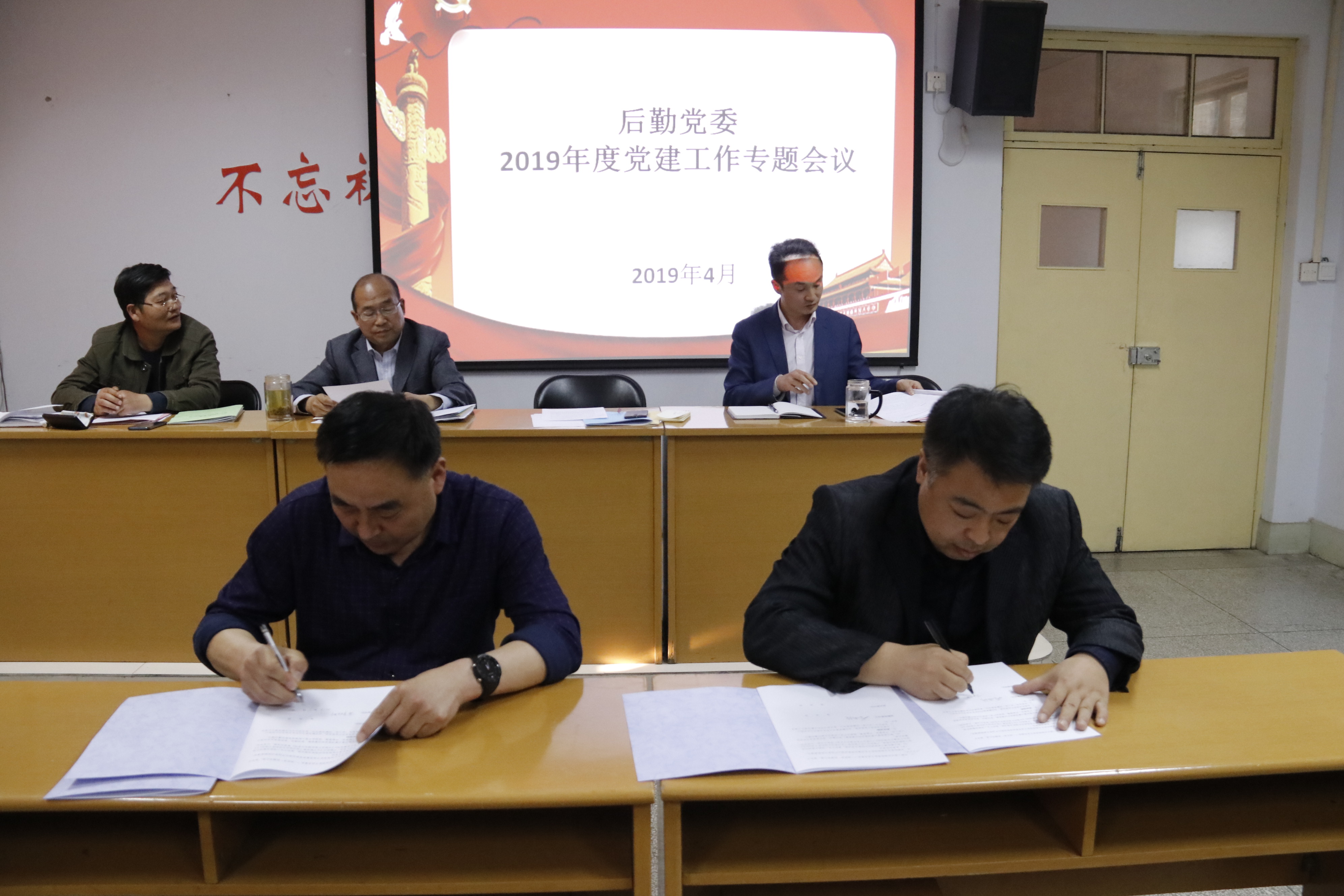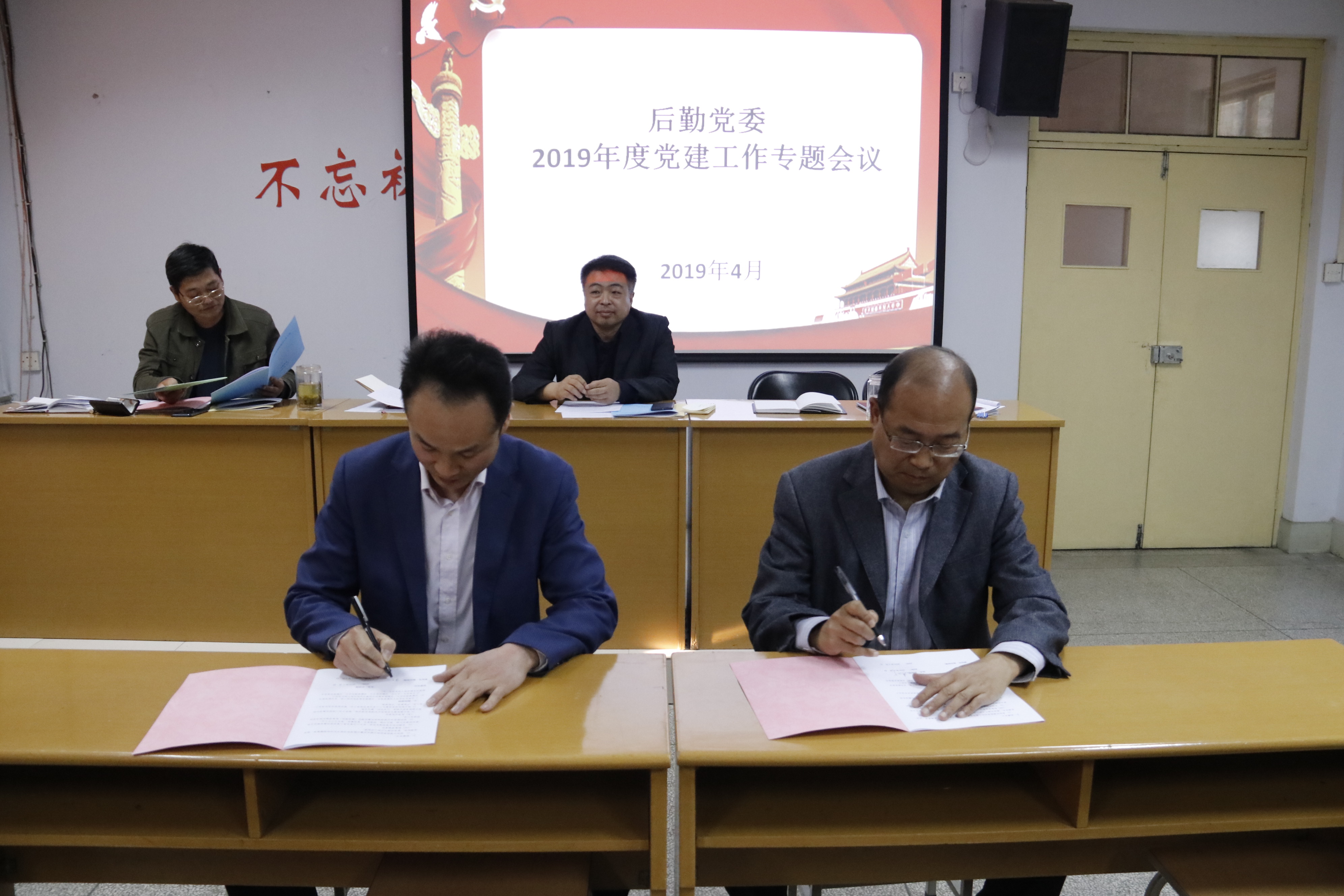 会上,董国强、李庆广代表后勤党委,对副处级干部、正科级干部落实党风廉政建设“一岗双责”进行了集体谈话,并与各部门签订了2019年党风廉政责任书、意识形态责任书和网络意识形态责任书。