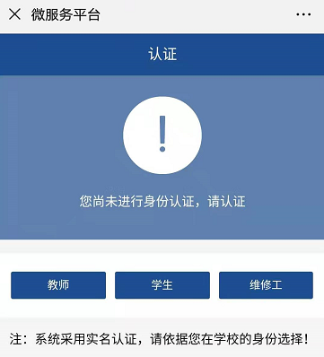 移动端登录方式:通过扫描以上二维码关注“河南师大后勤微服务”公众号,已经认证过的,可直接进入微服务大厅主页面(图1-2)。未认证的,可点击我的,选择角色(图1-1),输入姓名及工号,进行认证,可进入微服务大厅(图1-2)主页面。(框内服务已上线)
