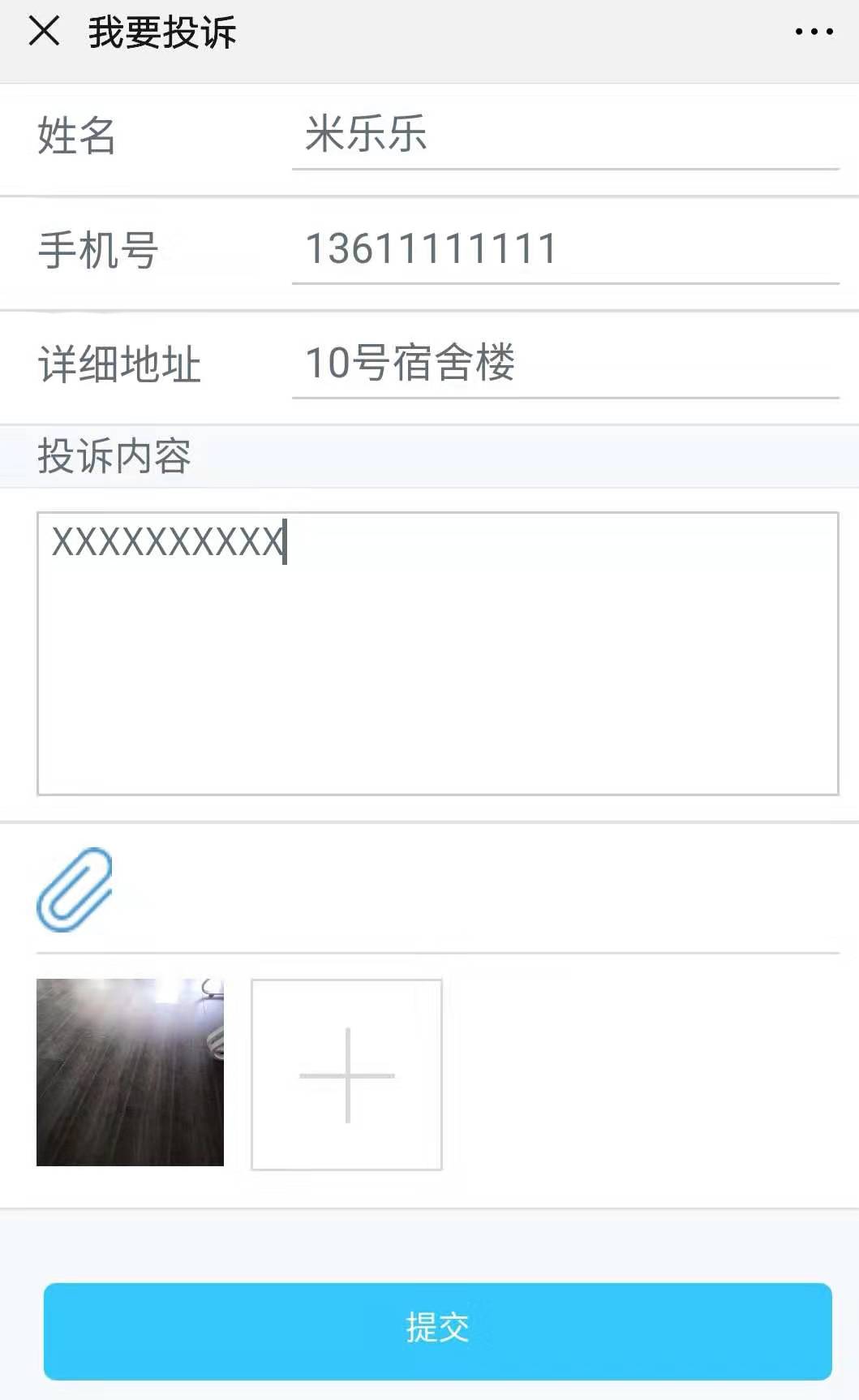 服务监督:用于及时了解和掌握我校师生对后勤服务的意见和建议,不断提高后勤服务质量,师生可以直接通过手机端反馈需要投诉的内容。