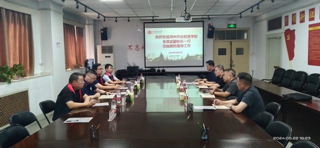 董国强对张其武副校长一行的到来表示热烈欢迎,并介绍了我校科技创新港建设和学校后勤服务保障工作的基本情况。张其武介绍郑州升达经贸管理学院登封校区的建设情况。双方表示将加强交流与合作,共同促进两校的新校区建设和后勤服务保障工作高效发展。