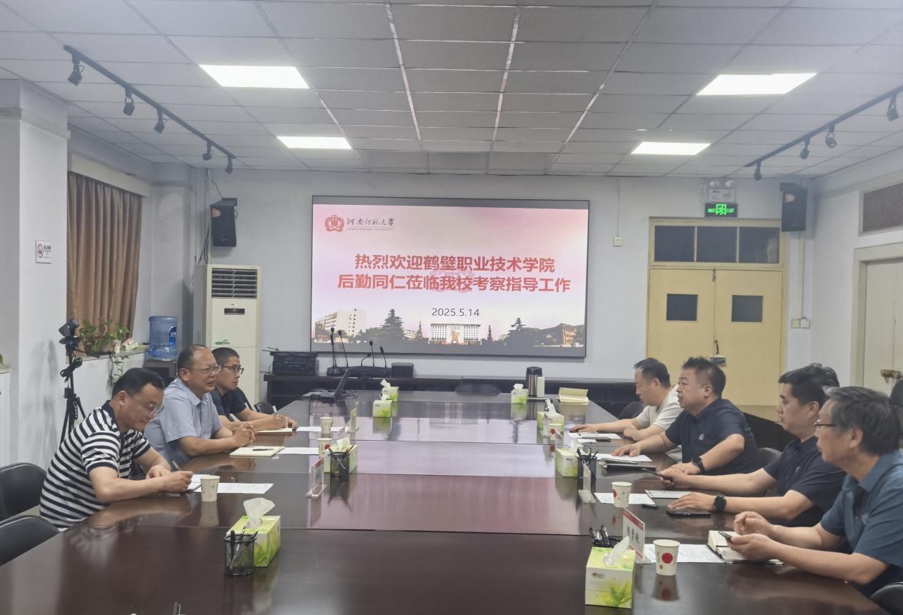 5月14日下午,鹤壁职业技术学院后勤保障监管处处长张玉柱一行到我校开展调研交流。座谈会在文渊楼五楼会议室举行,后勤管理处处长、后勤服务集团总经理董国强,后勤管理处副处长、后勤服务集团副总经理赵胜杰,修建中心经理杨贵银,餐饮服务中心经理冯圣堂出席会议。会议由董国强主持。