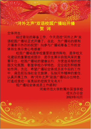 为营造浓郁的校园文化氛围,彰显办学特色,伟德官网下载苹果版附属外国语学校“河外之声”双语广播站在全校师生的热烈期待中正式开播。广播站以弘扬社会主旋律、丰富校园文化生活、传播校园正能量、促进学生健康成长为宗旨,致力于为广大师生提供优质的广播服务。